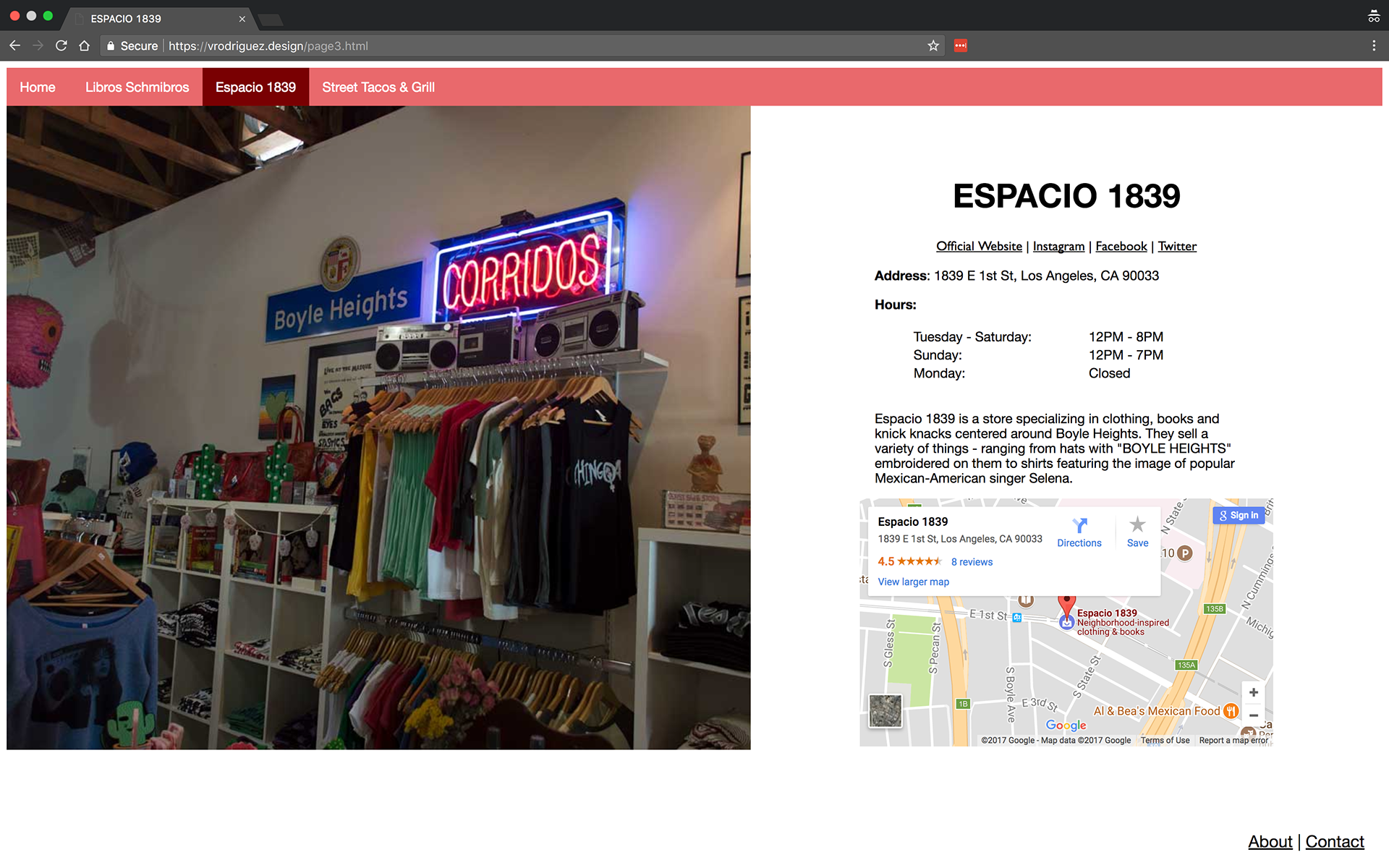 : Website coded and created with Adobe Dreamweaver. Coding, layout, design, and photography done by me.
