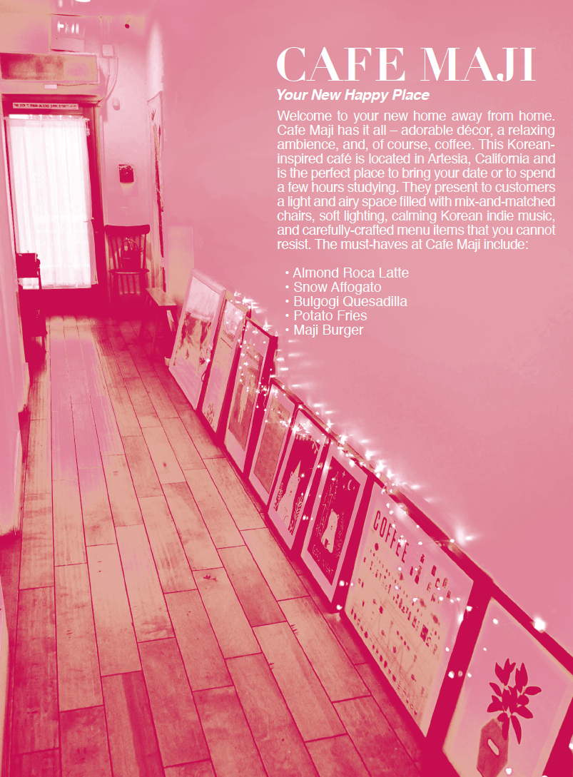 Series of posters advertising Cafe Maji, a cafe located in Artesia, California.