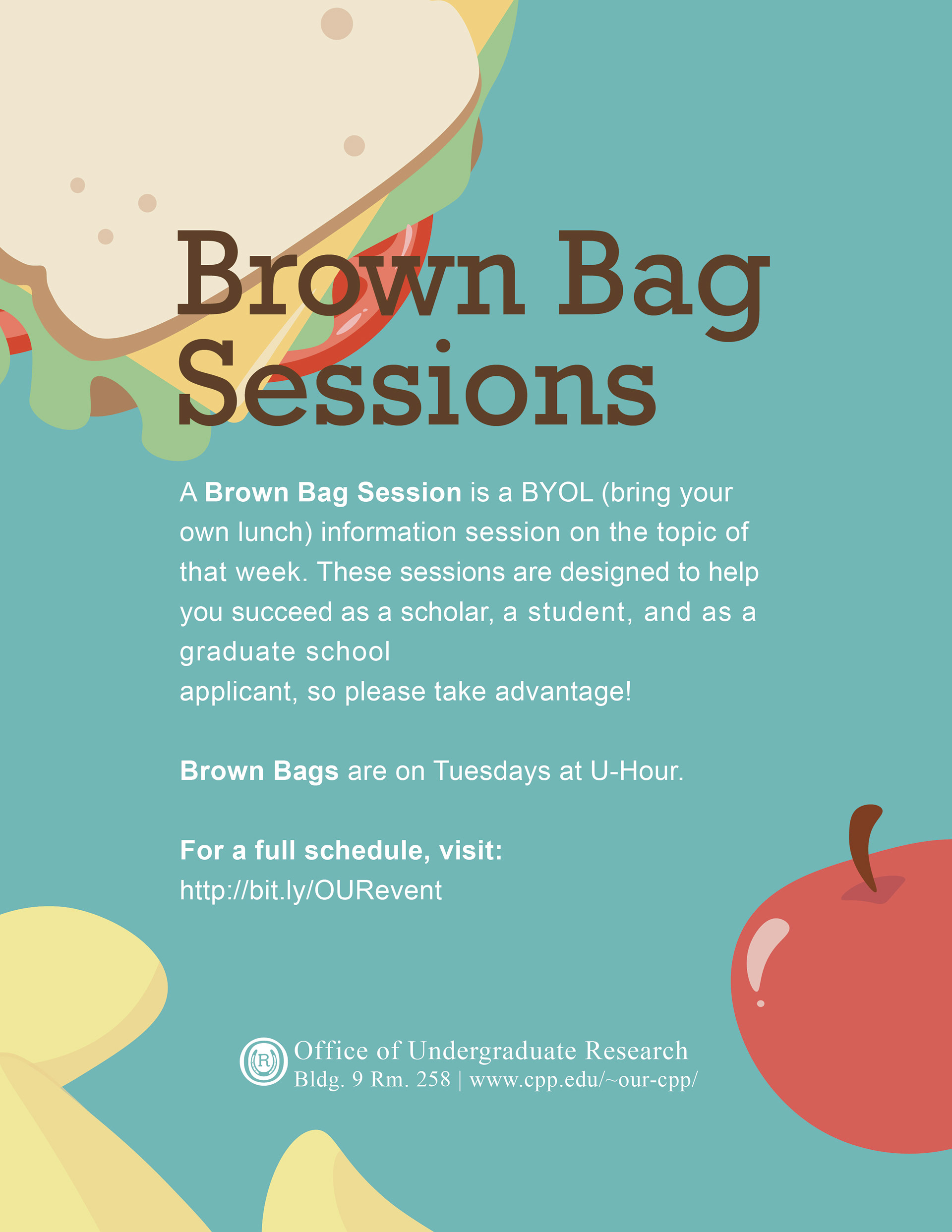 Various advertisements distributed through print, social media, and email for the Office of Undergraduate Research at Cal Poly Pomona.